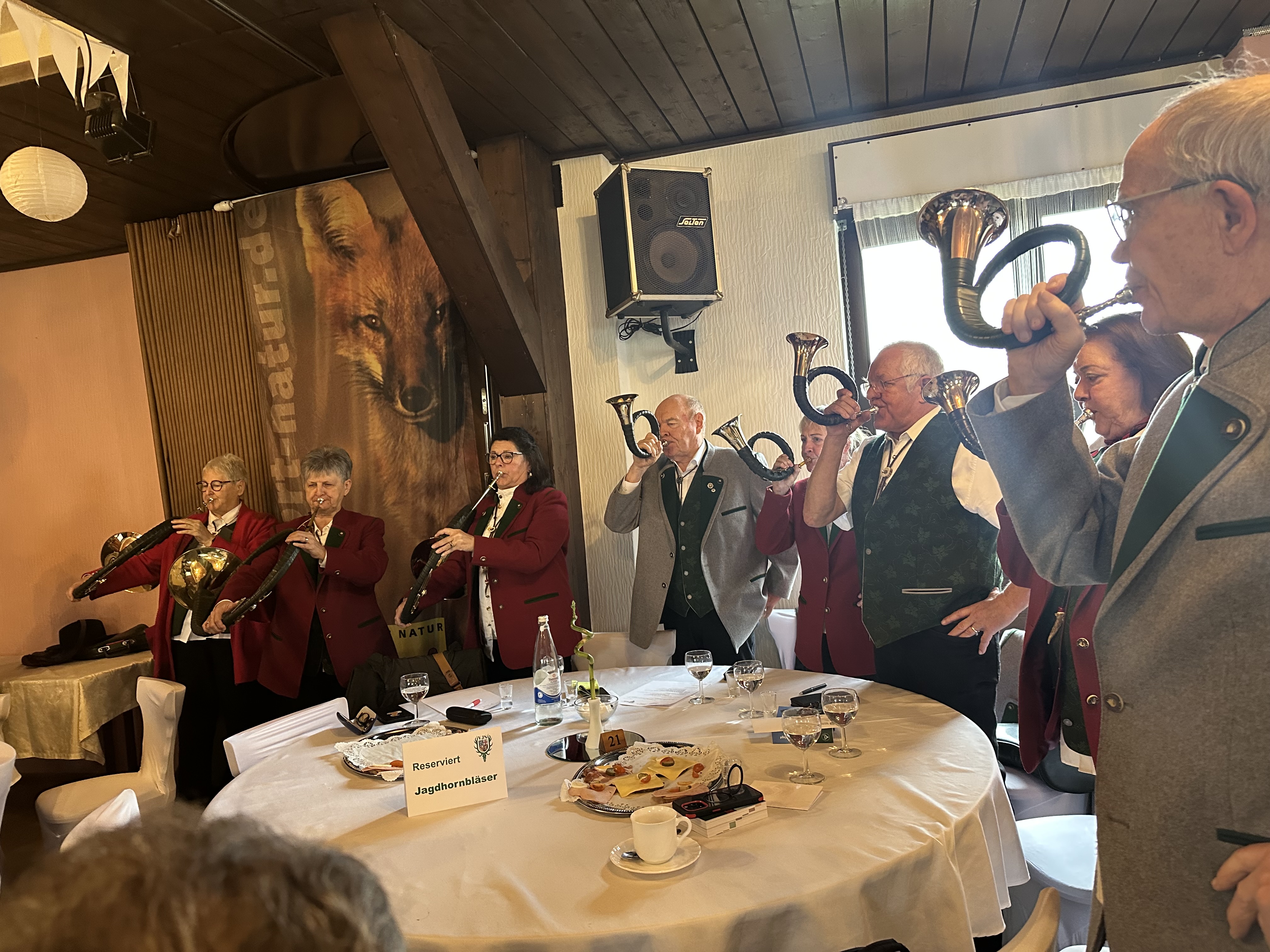 Die Tagung fand ihren traditionellen Abschluss mit einem Teller Erbsensuppe mit Sauerkraut unter den Jagdhornklängen des „Jagdhornbläsercorps Hubertus Illtal“.