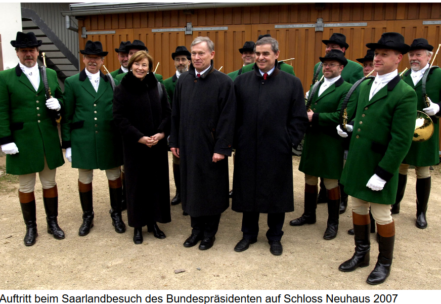 Saarstatut im Oktober 2005 begrüßte das Bläsercorps den Bundespräsidenten Horst Köhler mit Gattin auf dem Gelände Forsthaus Neuhaus. Sein freundliches und volksnahes Auftreten konnte ich hautnah erleben und es hat mich beeindruckt. Außerdem, wann bekommt man ein Staatsoberhaupt so nahe zu Gesicht?